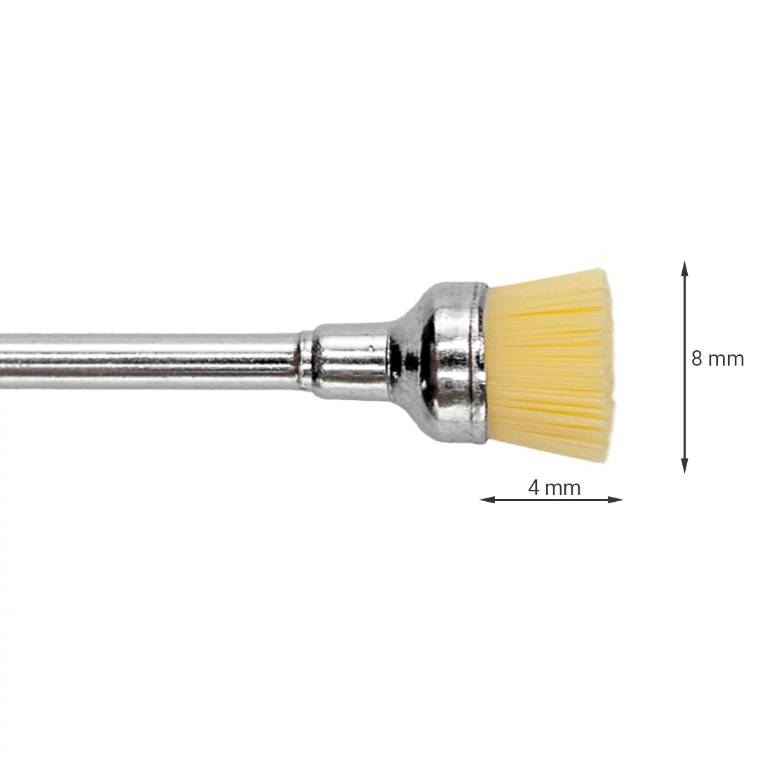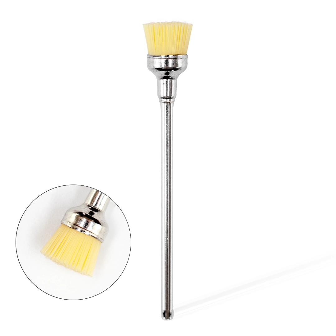 A round brush for cleaning nail ridges and removing excess dust from the back and side skin folds. Use at low speed when cleaning the ridges.