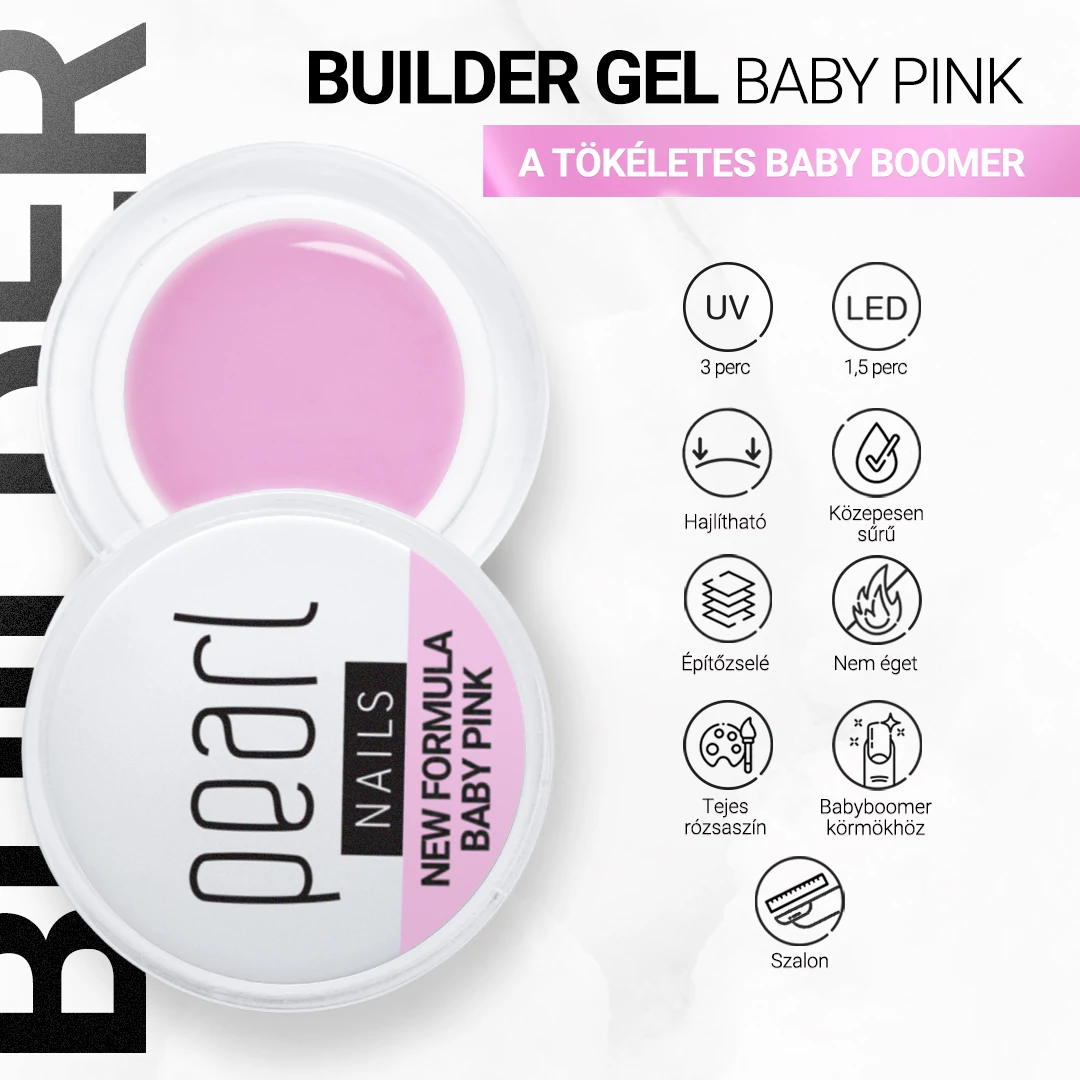 Pink builder gel, which is an excellent choice as a base for baby boomer, nude or French manicures .  Its medium-thick , yet easy-to-handle, self-leveling formula makes precise work easier. It provides a durable, yet flexible finish – recommended for beginners and professionals alike!