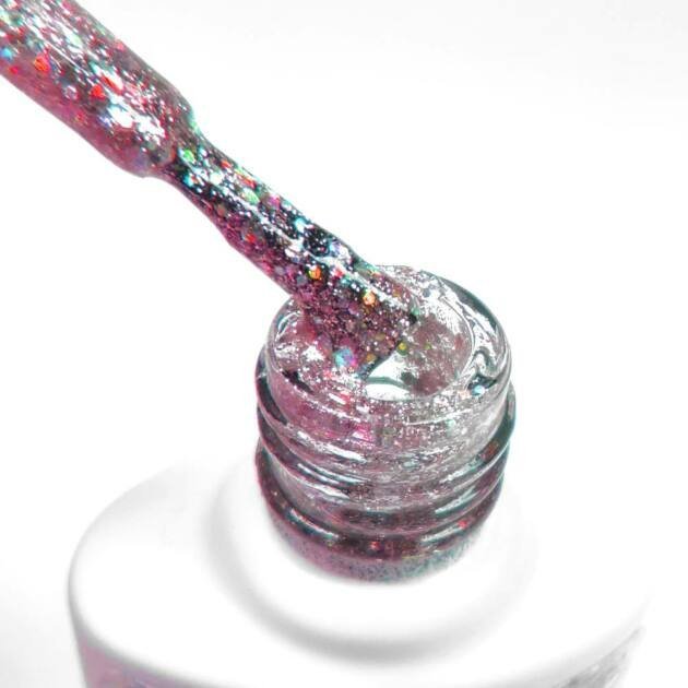 B) Use EFFEKT gel as a varnish in 1 coat on any base for pink glitter nails.