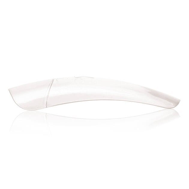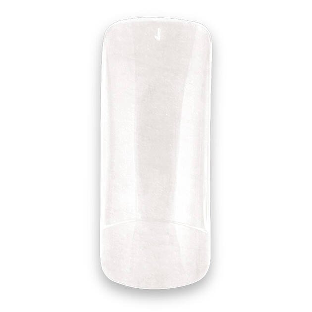 Straight, parallel-shaped artificial nail tip with contact strip and slight C-bend. In natural and colourless versions. In a box of 100 pieces: 10 different sizes, 10 tips per size.