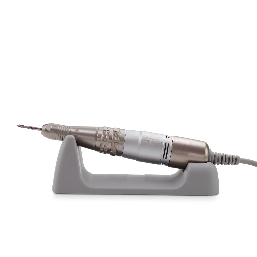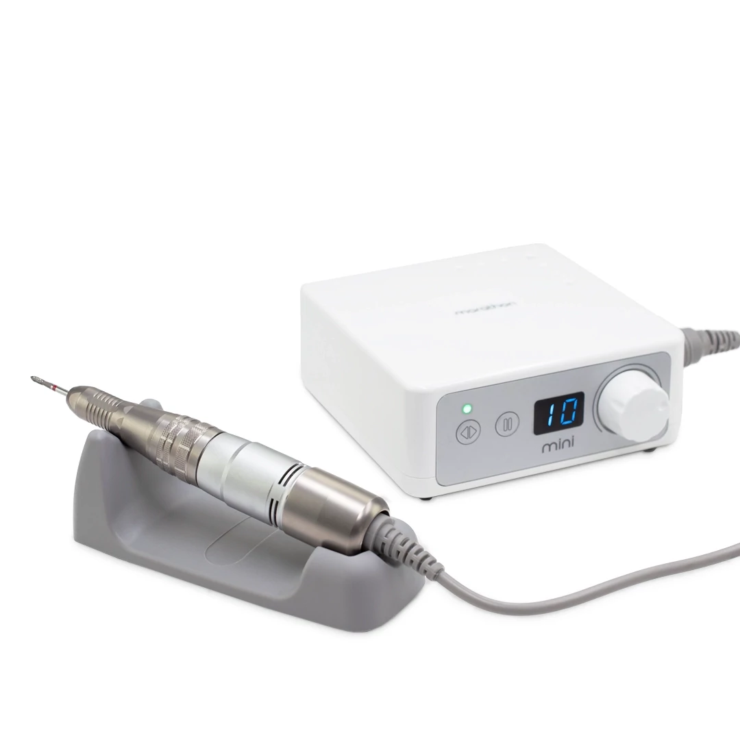 The Marathon K-35 Mini grinding machine is specially designed for professional nail professionals. The precise, vibration-reduced, ergonomic handheld unit fits perfectly in your hand for comfortable working. The control panel with digital display shows the current speed of the handheld unit, ensuring accurate and safe operation. While working, the handheld unit can be safely placed on the dedicated silicone stand included with the kit.