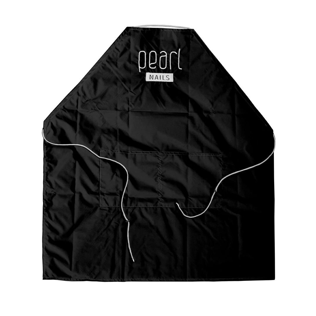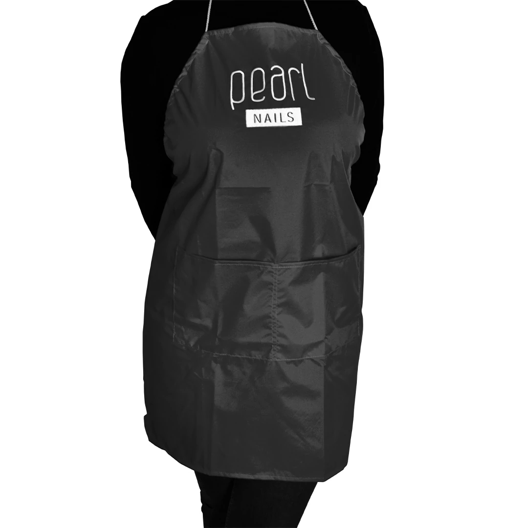 Apron with embroidered Pearl Nails logo made of waterproof material. Can be hung around the neck and tied at the waist.