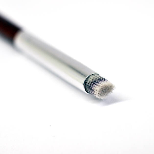 Cylindrical, bevelled, synthetic, very soft-haired decorative brush . It allows easy and even application of decorative pigment powders.