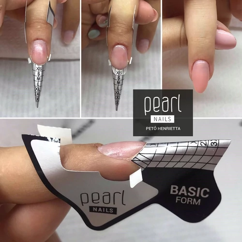When applying, guide lines at the corners of the nail mark the direction of the cut and show at what angle the cuts need to be made so that the template fits the free edge as perfectly as possible and can be pressed narrower.